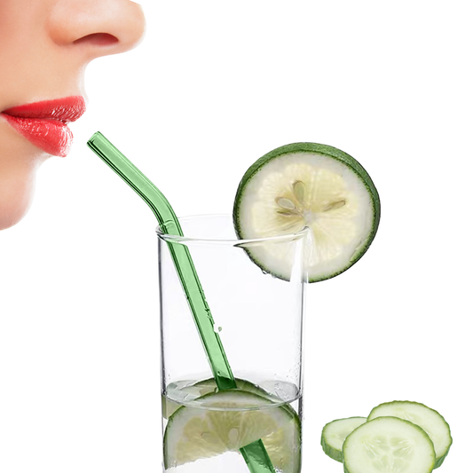 Popotes de Vidrio Reutilizables. Set de 4 popotes (2 Rectos + 2 Curvos) con Cepillo de Limpieza. Transparentes, Ecológicos, Elegantes. (Claros)