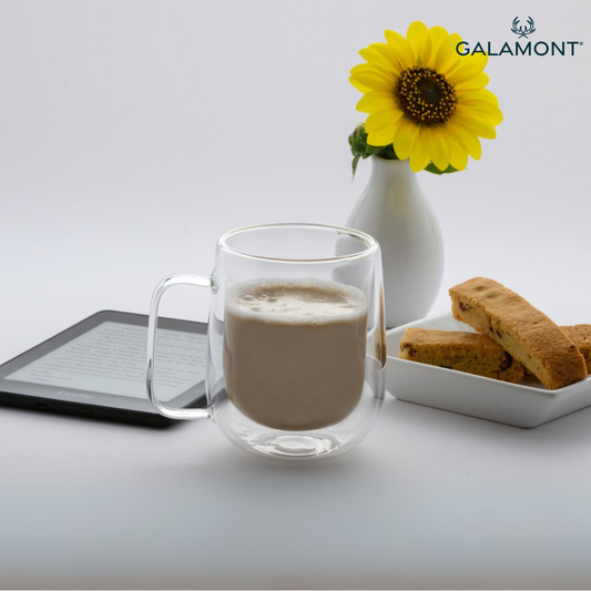 Tazas Doble Fondo para Café Espresso, Americano, Té. Set de 4 Tazas Doble Pared de Vidrio, 300 ml. (4 Colores)